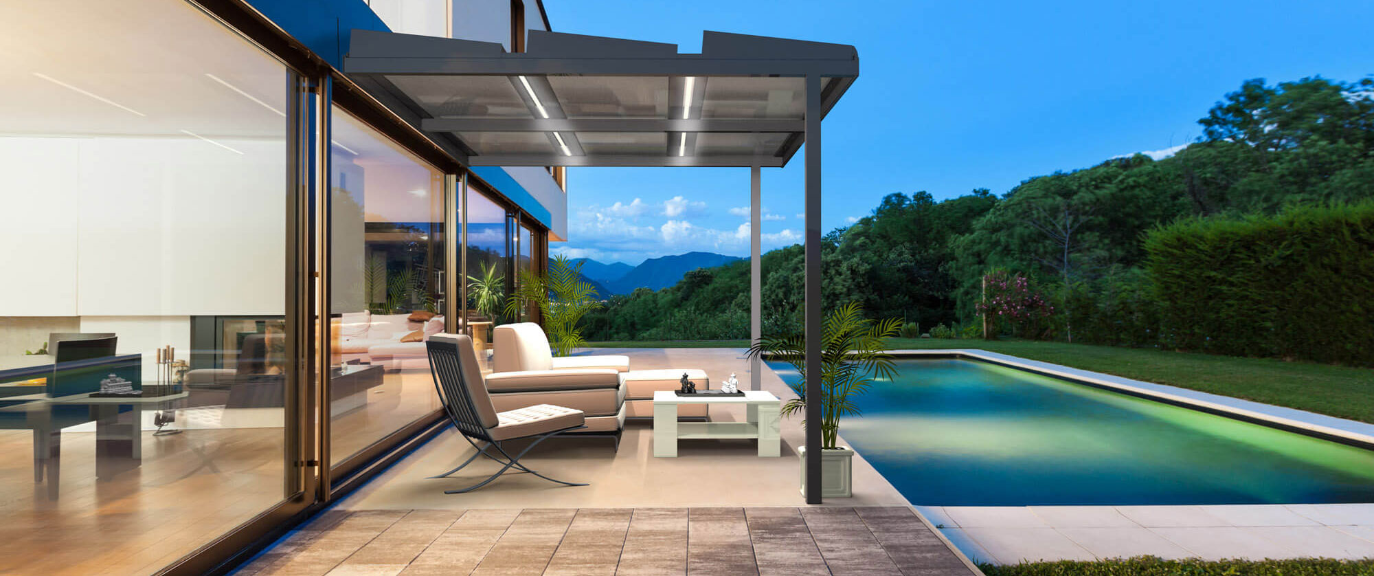 Ons nieuw pergola systeem is volledig op maat èn smaak te configureren, beschikbaar met 2 of 4 poten. Ideaal inzetbaar als pergola, carport, poolhouse, veranda,… of in de commerciële en publiekelijke sector.